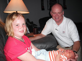Levi's first time in his crib. Thanks to the Griffin's for letting us borrow their crib and thanks to Renee for the home made blankets and burp cloths. He loves it. Annie's friend Jordan and Amanda gave him this sweet Kissy Kissy outfit, he wore it home from the hospital.